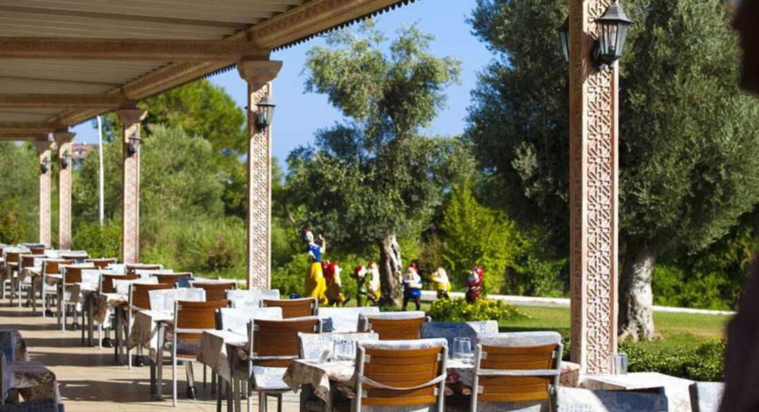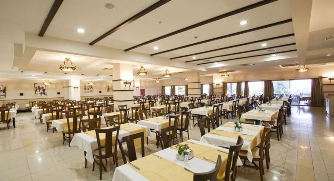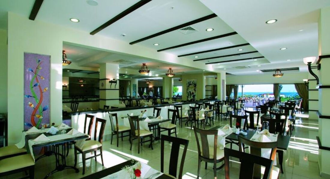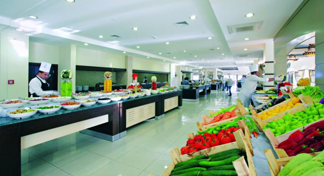 Сніданок з 07:30-10:00, обід з 12:30-14:00 та вечеря з 19:00-21:00, пізня вечеря з 23:30-00:00. Шведський стіл. Ресторан розрахований на 600 місць у приміщенні та 600 місць на терасі. Дитяче меню: паста, спагетті, сосиски.