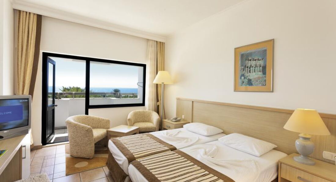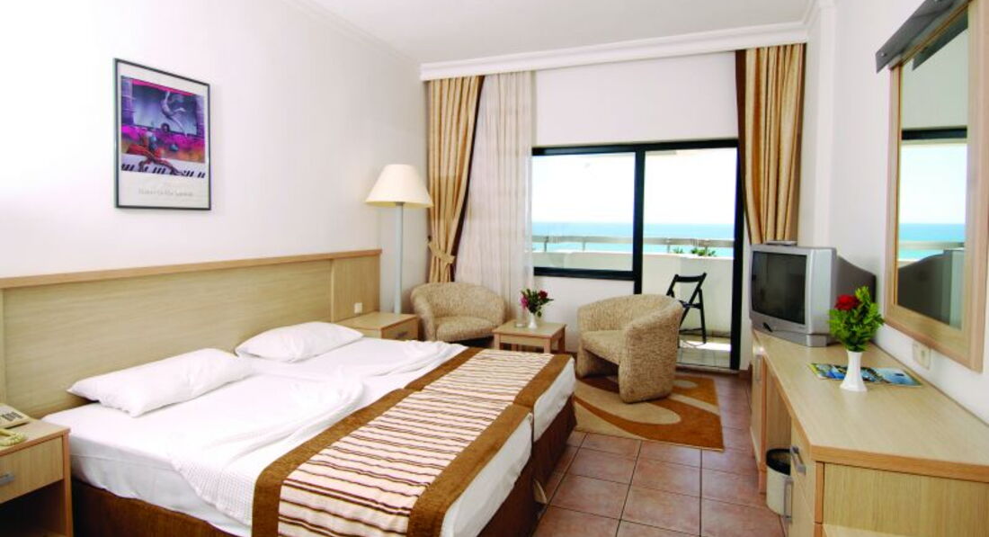 Приехали в 6 утра с маленьким ребенком. Переживала что не заселят. Заселили бесплатно. Отель старый. Но мы ехали за морем. Ходить далеко или ездить на маршрутке, как другие отели с маленьким ребенком не вариант. Море в 50 м. Лежаки всегда были в достаточном количестве. Все что писали до этого в том или ином количестве присутствует. Но тут вопрос кто зачем едет. Еды было достаточно всегда. Фрукты. Сладости. Алкоголь рекой. Никто никого не ограничивал. Насчет качества, не слышала чтобы кто то жаловался. Анимация вечером есть,но не долго. Нам и не надо было шума, как в других отелях. Для деток мини диско. В столовой персонал весь приветливый, улыбаются. А как они любят деток, я первый раз в жизни такое видела!!!!! Моей дочке пели песенки, улыбались, кто то и в щечку успевал поцеловать. Выезд из отеля нам меняли три раза. Еще и дочка отвлекла когда из номера с чемоданами выходили. В итоге забыли дорогой сотовый телефон!!!!!!! Причем и не поняли даже что потеряли. Не прошло и 5 минут, на ресепшене,где мы ожидали автобус начали кричать нас, что мы забыли телефон!!!!!!!!! Спасибо честному персоналу!!!!!!