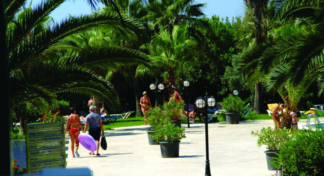 Отель "заточен" под граждан Германии. 9 Мая здесь нет праздника. Нам русским это сложно принимать. Вся философия этого места - степенный размеренный отдых. Детям здесь скучно. Это отель для зрелой публики. Система "all inclusive' привязывает постояльцев к месту. Тем не менее, передвигаться самостоятельно довольно просто. Рядом автобусная остановка. Можно легко добраться до Манавгата или Сиде. Многокилометровая прибрежная полоса позволяет совершать дальние прогулки. Никакой агрессии, о чём меня не раз спрашивали, я не заметила.