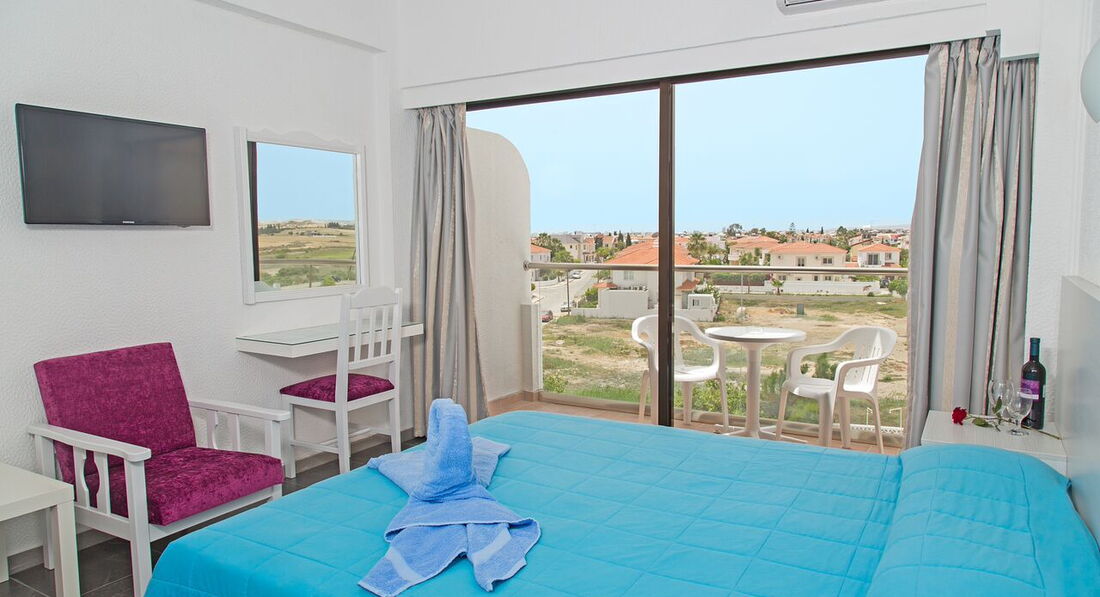 Кому интересно в номере два русских канала и телевизоры, куда можно присоединить флешку. Розетки адаптированы, т.е у вас будут две европейские розетки и два usb-входа( можно сказать 4 розетки). В отеле есть бассейн и лежаки. Лежаки бесплатно, можно взять полотенца пляжные( депозит 10 евро, который потом возвращают). Полотенца можно брать и на море. Есть бильярд. Тенисным кортом не пользовались, но он есть. Очень здорово, что в отеле бесплатный wi-fi. Причем в номере(по крайней мере на 2 этаже) берет без проблем. В итоге хорошо сэкономили на связи, общаясь по ватсап. В отеле только одна девушка на ресепшен говорит хорошо по-русски, но есть еще девушка в баре, она тоже говорит по-русски хорошо. Кстати, не заметили прегебрежения со стороны отеля к русским рли другим национальностям, все равны. Анимации при нас не было. В Ларнаку ходит 424/425 автобус( раз в полчаса, остановка находится чуть левее от таверны на берегу моря), но один раз автобус просто не остановился. Остановка рядом с отелем, там ходит автобус 419(раз в 1-1,5 часа) Проезд 1,5 евро/чел, после 22 часов 2,5 евро. В айя-напу автобус 711 (1,5 евро) или зеленый междугородний автобус. Есть сайт http://www.cyprusbybus.com, где можно посмотреть все маршруты автобусов(там кстати есть и русская версия сайта). Для тех кто как и мы путешествует самостоятельно могу порекомендовать програмку maps.me(не сочтите за рекламу, она бесплатна) Ее плюс, что карты можно скачать и работает она в офлайн режиме. Неплохо прокладывает пешие маршруты..Вобщем, как писали все люди про этот отель, отдых для любителей спойствия. Любители тусовок ехайте в другое место. Рекомендуем к отдыху. Кстати, по заселению. Мы приехали в отель в 9-00. Нас заселили только в 13-00. Будьте готовы( мы читали об этом, поэтому взяли из России покушать, т.к завтраком не кормили, только обедом). Ребят с детьми заселяли сразу(может они заранее конечно предусматривали). В общем отель достойный!