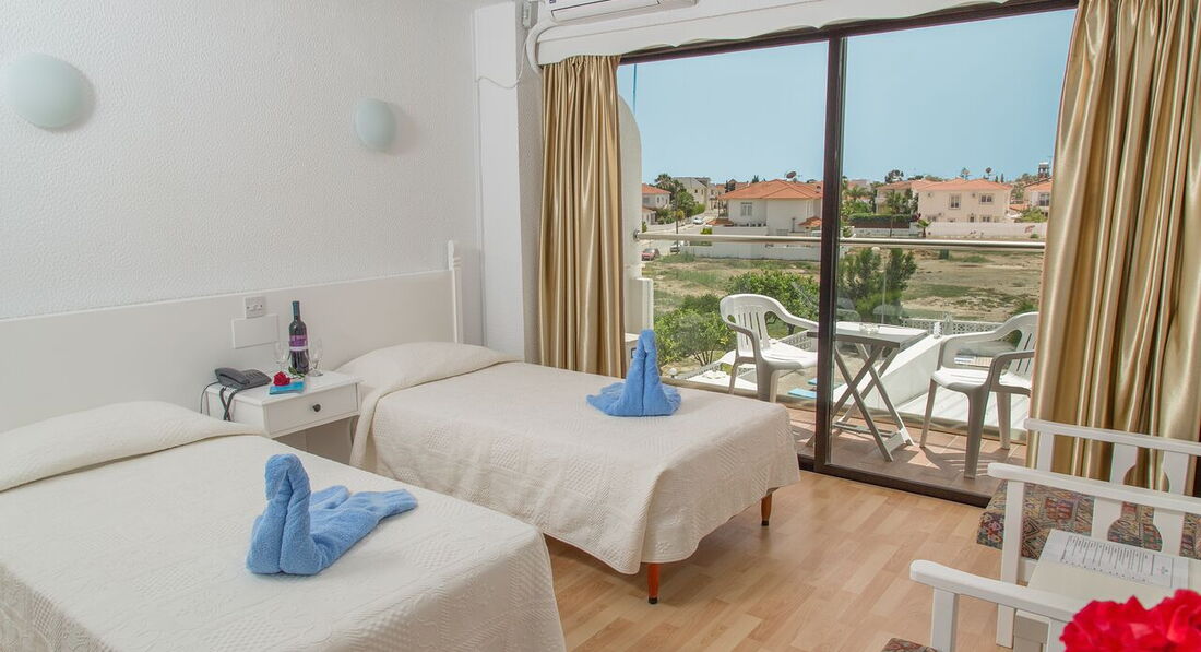 Вырывались с мужемна недельку на Кипр, попали в этот Отель, ооочень чистый, ооочень приятный, с ооочень вкусной едой. У нас были завтраки и ужины, нам более чем хватало. Пару раз обедали в тавернах, но так как завтраки были сытные и с них с собой мы брали фрукты, сосиски и яйца , покупали вино и шли на море, то обедать мы перестали, ужины очень вкусные и разнообразные. До моря рукой подать. Скучно стало поехали в Ларнаку на пляж, потом в Айа напу, нас вообще не напрягала удаленность от шумного города, здесь так тихо и хорошо! захотелось шума и людей поехали в Ларнаку или Айа напу, мы очень довольны отелем, вернёмся ещё, кстати море и бассейн были тёплые, хорошо нагревались к обеду! Номер выходил на дорогу, но шума от дороги почтине было, ездят и ездят машины, короче Здорово, чисто и вкусно