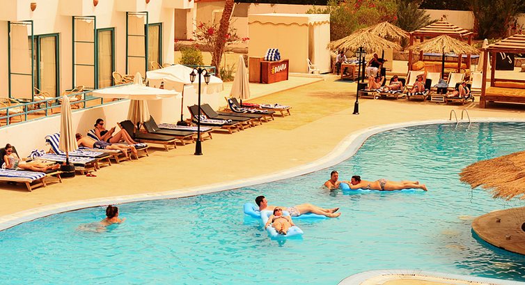 На пляже и в отеле арабы 95%. В басейне не купались, вечером в ведре розводили хлорку и выливали. Днем там только арабы купались и то немного. Мне мерзко было и страшно подцепить что-то. В баре посуды не хватало, стаканчикоы мало, чашки побиты. Анимация приходила после 20.00 включить музыку с компа на 2 часа.