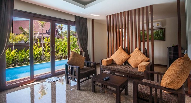 Типи номерів: 36 deluxe pool view (в основному будівлі, 39 кв.м, макс. 3 чол) 36 pool access villa (55 кв.м, макс. 3 чол, дощовий душ) 3 private pool villa (79 кв.м, макс. 3 чол, DVD/CD програвач, басейн, джакузі)У номері:
