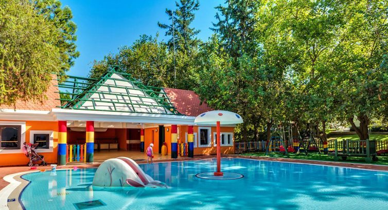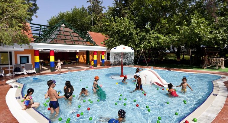 Детский бассейн был теплый и находился частично в теньке.Был еще басссейн с горками(3 штуки).