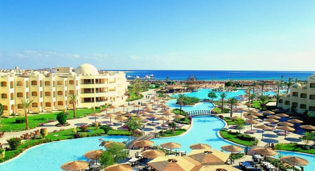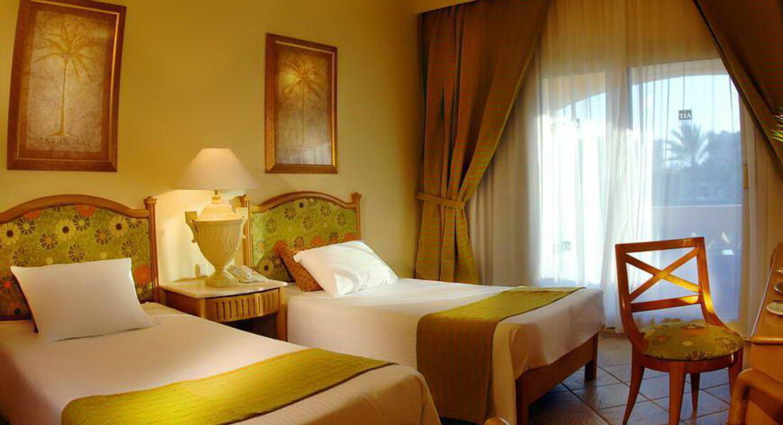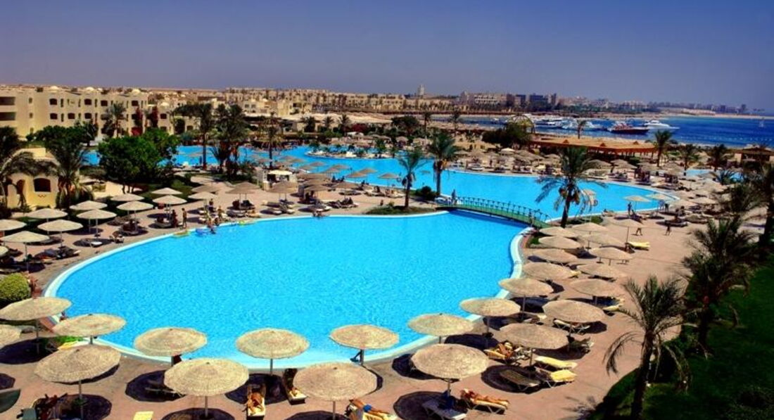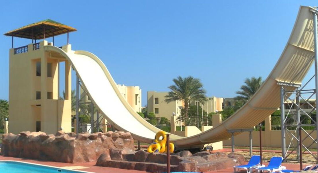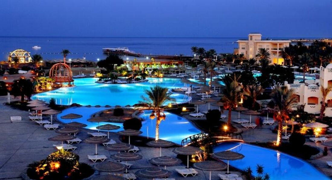 Во первых обратите внимание что отель удален от города Хургада трансфер довольно долгий полтора часа примерно. Ну это с учетом того что мы останавливались в отелях по пути. Лично мы сами еще ездили на такси и дорога занимало минут сорок. Очень удобно что сразу по приезду всех стараются расселить. А не заставляют ждать до времени заселения. Но тут уже все зависит от наличия готовых номеров и наплыва туристов. В общем в этом нам повезло. По приезду угостили напитком, быстро все оформили и сразу одели браслеты. И вот уже через минут двадцать мы шли смотреть наш номер. Наш номер находился в близости от аквапарка. И располагался на первом этаже. Номер самый стандартный. Мебель уже подуставшая но не убитая в хлам. Есть большая двуспальная кровать и полуторка как доп спальное место. Шкаф хороший большой и есть бесплатный сейф. Есть телевизор но он старого типа да и мы его так не разу не включали. И нет чайника чего мы совершенно не учли при выборе отеля это для пятерки вообще необычно. На троих давали всего две бутылочки воды хотя заплачен номер был на три человека и набор для ванной комнаты не обновляется. Что было по приезду потом не дополняют. Правда этот момент почему то зависит от чаевых если оставлять его обновлять будут. Хочется похвалить территорию отеля. Учитывая что тут солнце и песок мы не ожидали такого количества зелени. Много клумб с цветами и красивых фигур из подстриженных кустов и деревьев. Очень красивый большой бассейн но он не подогревался и куда меньших размеров бассейн с подогревом. Там мы и плескались. Пляж это большой плюс отеля. Он длинный и широкий и с мягоньким песочком. Лежаков очень много и даже несмотря на то что люди любят занимать их и не приходить мы в любое время дня находили свободные. Лежаки уже далеко не новые есть и сломанные но все равно их хватает. Так как отель стоит в бухте, о ветер чувствуется не сильно. Вход в воду пологий, но не длинный. Удобно купаться и взрослым и детям. До глубины долго идти не придётся, что тоже порадовало. Стайки рыбок плавали уже зайдя в воду по пояс, но чуть дальше уже есть риф, и там намного красивее и интереснее. Так же нашли много интересного и за территорией отеля. Самые большие впечатления от отдыха получили на экскурсиях. Особенно могу порекомендовать классную экскурсию супер эль гуна. Тут вы сразу получаете пять в одном. Это и сама эль гуна и посещение бухты дельфинов еще туда входит батискаф и банан с таблеткой. И еще накормили в обед морепродуктами. И цена смешная всего по 40 долларов. Но брали мы экскурсии у местной фирмы у оператора такая же экскурсия стоит 65 долларов. Саму фирму легко найдете по названию medaliontours.com/hurghada в поиске яндекс. У них первоклассный гид все очень интересно рассказывал. Хорошо говорит на русском. Хороший комфортабельный транспорт. В общем сервис отличный. С развлечениями в самом отеле неплохо. Анимация интересная, но в то же время не навязчивая. Можно позаниматься йогой, поиграть в волейбол, или поучаствовать в аквааэробике или других интересных акитивити. Есть детский клуб, но детей я там не видела, а вот по вечерам для них проводили мини-диско. Вечерние шоу совсем не интересные, больше смахивают на сельское представление в клубе. Есть большой аквапарк с множеством горок для взрослых. Большой детский подогреваемый бассейн с множеством развлечений. Т