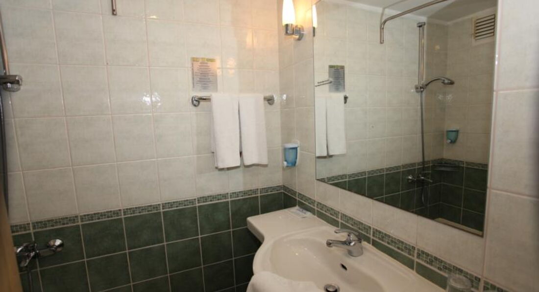 В ванной только жидкое мыло, поэтому шампуни, бальзамы и проч. берите с собой. И фен слабоват.