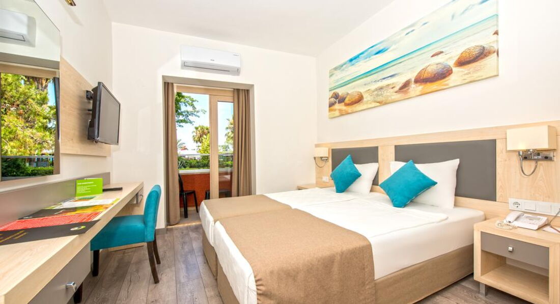 Хочется поделиться нашими впечатлениями о отдыхе в данном отеле. Привезли нас в отель в 12:00 примерно. Заселение как и везде в 15:00, мы были такие замеченные, что заплатили 30$ чтобы нам поскорее дали номер и мы смогли принять душ и переодеться. И вуаля, мы в номере. Номер дали на первом этаже, с балконом и двумя раздельными кроватями. Номер неплохой, чистенько. Питание в ресторане отлично. Территория ухоженная, общая с ещё двумя отелями. Можно долго гулять) красиво) пляж просто прекрасный, песочек, чистое море. Анимация по вечерам веселая, зажигательная) нам все очень понравилось) обязательно вернёмся ещё)