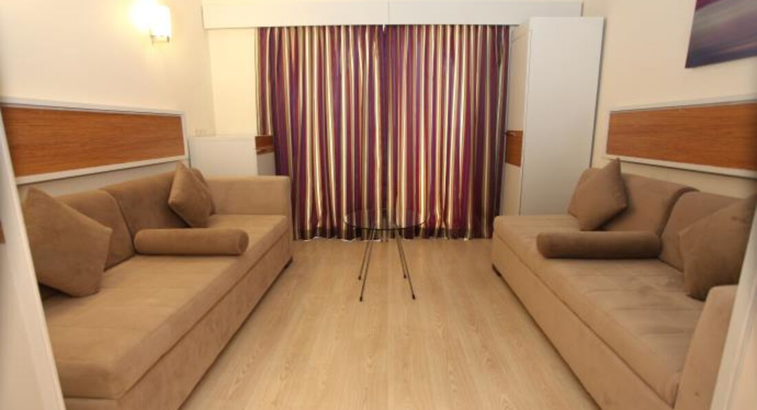 Привет всем! Меня зовут Алёна. Хочется поделиться впечатлениями об отдыхе в этом отеле! Прилетели компанией в кол-ве 9 чел. рано утром. До отеля ехали около 2 часов, но это время пролетело незаметно, все спали из-за раннего перелета. Кстати, летели турецкой регуляркой всего 3 часа. Вечером к нам прилетели еще двое друзей слегка раздраженные из-за неоднократного переноса рейса (чартер). Прибыли в отель часов в 9, но расселили нас молниеносно. Мы заняли 5 эдентичных номера с видом на море. Все чисто и аккуратно. Слегка удивил платный сейф. Всей компанией решили сразу пойти на море. Вот оно настоящее счастье - МОРЕ! То, ради чего мы вообщем-то и едем в Турцию. Слегка прохладное, но такое удивительно манящее! На пляже мы были единственные. Решили обследовать территорию, но отдыхающих обнаружили только на территории ROYALа. Позже узнали, что наша часть отеля начала свою работу лишь днем ранеде. В ресторане официанты любезно сдвигали для нас 4 столика. Еды много и она действительно разнообразная. Клубнику правда дали лишь один раз в честь Дня Победы. Безумно вкусный айран, что немало важно - в бутылках. На пляже и у бассейна большое кол-во шезлонгов, нет необходимости нестись занимать сломя голову. Хочешь релакса - иди на море, развлекухи - к бассейну! Водные горки аж в 3-х местах! Все клёво! Большая зеленая территория! Очень внимательный персонал! Отдельное спасибо управляющему отеля Эрхану! Этот человек всегда интересовался нашими делами. В нашей компании есть человек, знающий турецкий язык. Можете себе представить как нам повезло! Мы отдыхали ровно две недели, не потеряв ни дня. Номера продлевали до 17.00 за 50$. Нам и с погодой повезло. Лишь первые 3 вечера были слегка прохладными, но с каждым днем температура повышалась, согревая море. Пару дней были достаточно большие волны, но мы так весело попрыгали! Дискотека сначала была в помещении, а затем на открытом воздухе. Мы даже в боулинг поиграли! В наличии 4 дорожки. Мы получили от этого отдыха больше, чем хотели! Хочу признаться в любви своим друзьям и сказать им большое спасибо за этот чудесный отдых! Я хочу все это повторить!