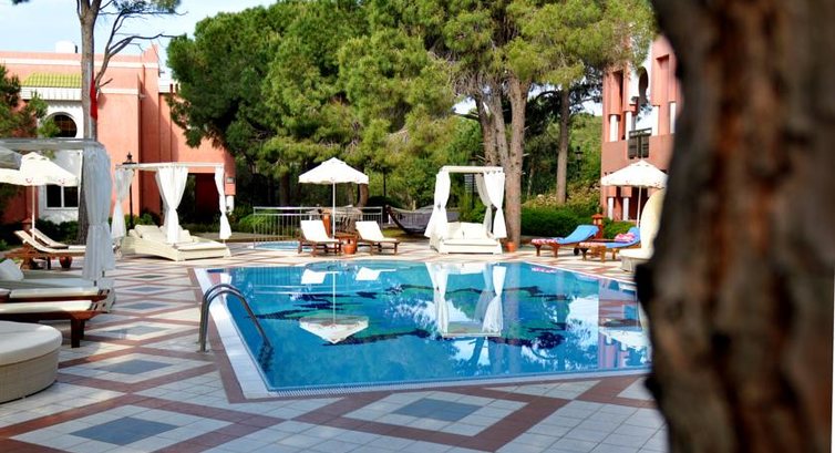 Очень красивая большая зеленая территория, сосны! Необычный дизайн номеров. Хорошее питание. Пляж чистый, вход в море пологий, очень удобный для отдыха с детьми. Хорошая анимация. Особенно детская. До Белек- центра 5 минут на такси.