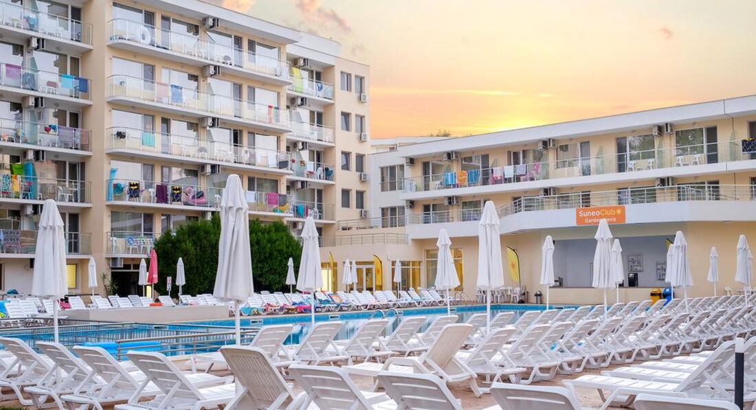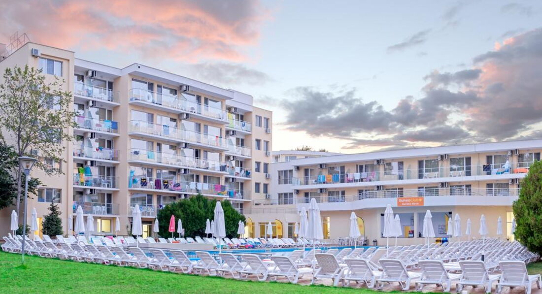 Готель Garden Nevis, що складається з 3 будівель, розташований на курорті Сонячний берег, за 800 м від аквапарку Action. Одна 3-поверхова будівля. Відмінно підходить як для молодіжного, так сімейного відпочинку.