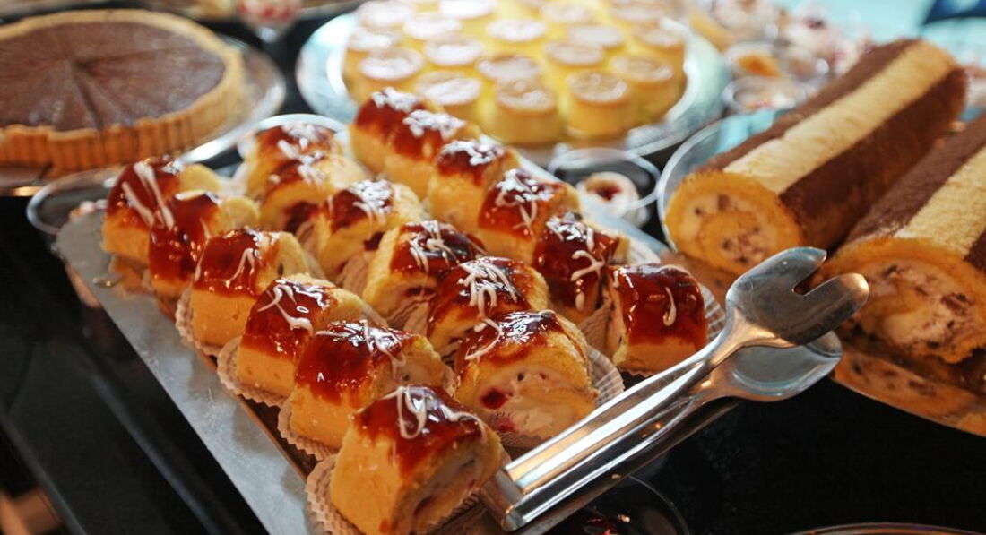 Сладостей не много но очень вкусные.Особенно шикарные торты на обед и ужин. Самый простенький лукум. Какие то разные пирожные и тд. Всё свежее и очень вкусное!