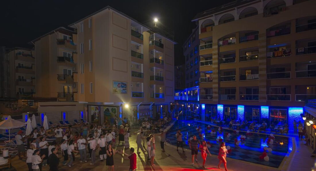 Анимации в отеле практически нет. После обеда проводят иногда водное поло, а по вечерам за 16 дней 1 раз была мини диско (детей еле набрали), и какие нибудь танцы. Каждую ночь в 23,30 аниматоры возят в ночные клубы Аланьи за 6 долларов-Havana,Bistro Bellman, Summer Garden. Я ездила в Хавану, понравилось)