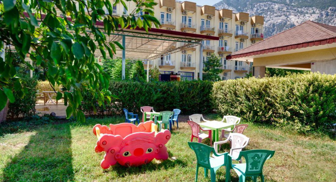 Отдыхали в отеле вдвоем с подругой две недели за 52 т. руб. Заселили быстро , не дожидаясь 14 часов . Номер с двумя кроватями , чистым бельем , 5 полотенец серого цвета , очень тесная душевая кабинка , полочек нет . Шум от соседнего отеля до 2 х часов ночи . Поменяли номер без проблем . Стало тише . Питание . Стали вегетерианками . Завтрак . Яйца , шарики с молоком , оливки, маслины , колбаса невкусная , брынза , помидор , огурец и трава . Обед . Суп , Овощные блюда , трава и соя . Ужин . Суп , овощное что-то , кура иногда . Арбуз или апельсины через день . сладкие невкусные шарики . Чай понравился , кофе из кофемашины круглосуточно , вода . Территория . Выгоревшая трава . Бассейник малюсенький . Бар 12-14 и 18-21 с кислым вином по 100 г. Бармен веселый , но это не улучшает вкус вина . Дают юппи . Все напитки подают в пластике . Ночью очень шумно . Море рядом , 5 мин. Нужно на пляже найти служителя , он даст место . Занимали лежак в 6 утра . После завтрака мест свободных мало . Экскурсии брали по дороге на пляж рядом с отелем , дешевле намного , чем у оператора . Взяли Анталию с канаткой за 30 дол . Понравилось . Хвалят Демре ,Св Николай за 20 дол. Ходили на дикий пляж . Красиво , но очень крутой спуск и жарко . Можно пройти по реке , но мы об этом узнали поздно . Хорошие виды около дикого пляжа и дальше по дороге от старого тоннеля до нового . Это 30 мин ходьбы от нашего отеля . Идти налево . Направо от отеля вся торговля . По понедельникам рынок . Цены дорогие . Только фрукты по 1 дол . Анимации нет . Смена белья . Меняли сами полотенца на 1 этаже . Туал бумагу брали на тележке на этаже . Уборка только по требованию . На 60 номеров 2 уборщицы полуживые . Мы убирали сами . Телеки не работают . Вай-фай 2 дол . в день . Только на 1 эт. и не ловит почти . Холодильника нет . Проблемы решают русскоговорящие бармен и менеджер . Остальные понимают только турецкий . Море - это громадные камни у берега и в воде . Коралловые тапочки вам в помощь . За 3 и 10 дол . купите . Шопинг . Недорого только всякая ерунда . Отдохнули хорошо,вопреки всем минусам отеля . Много гуляли , купались , общались с разными людьми .