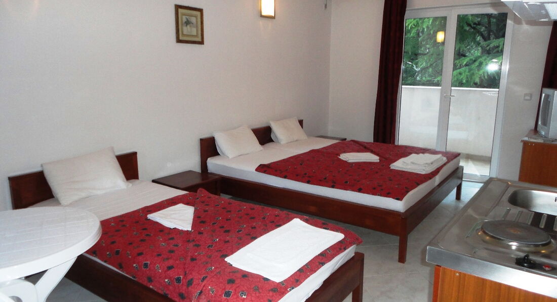 Studio 02: 22м2, тераса 4 м2, 2 окремих ліжка, мінікухня, ТБ, тераса.