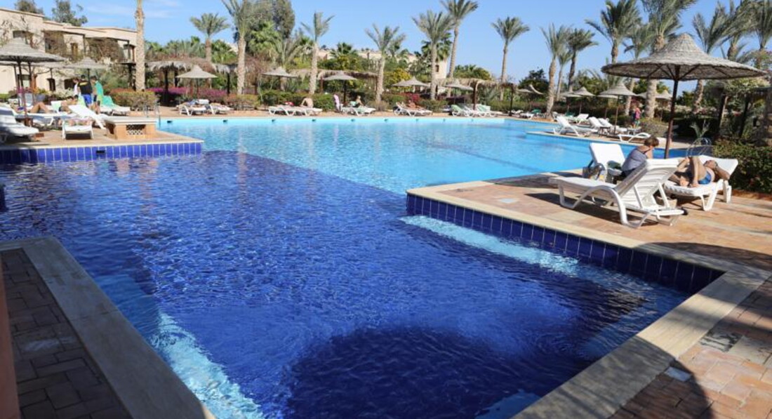 Приехали в отель около 9,00, сразу поселили в хорошие номера (два номера рядом, как попросили) и надели браслеты. Меню европейское и очень разнообразное. Есть один бассейн с подогревом, шезлонгов хватает всем, без проблем, в отеле отдыхают итальянцы процентов восемьдесят, немцы, немного арабов, украинцев и белорусов. Анимация итальянская очень хорошая, для украинцев анимация слабенькая (украинцев мало), для нас это было не принципиально, мы ездили в Каир, приехали ночью, в номер принесли ужин (мы не просили, было очень приятно). Воду приносят в номер две бутылки по 600гр. ежедневно (бесплатно). Улетали мы поздно вечером, выселились до 12.00, но браслеты нам оставили и на полчаса дали ключи от номера что бы переодеться и принять душ перед выездом вечером. Впечатления от отдыха самые хорошие. Большое спасибо персоналу отеля.