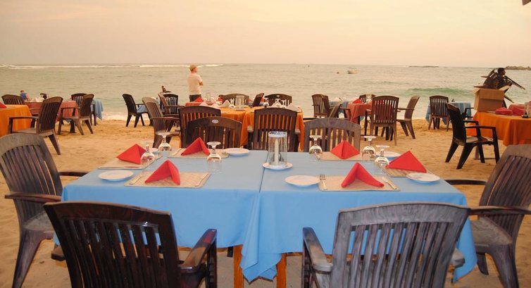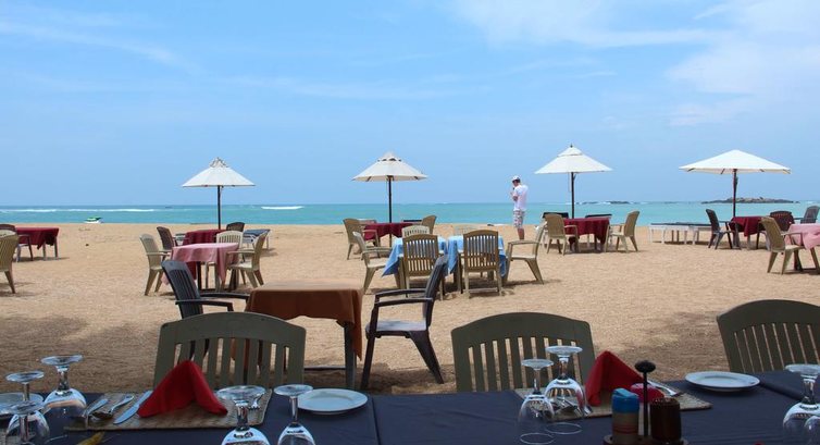 Между береговой линией и отелем расположен их отельный ресторан под открытым небом. Ресторан с хорошим выбором блюд, но дорогой, мы всего раз там ели, потом ходили в другие места. В ресторане всегда хватает народа, особенно вечером. То, что написано на сайте принадлежности для барбекю, то мы дома сначала думали, что это типа самостоятельного мангала для гостей. По факту это большой гриль ресторана, повар вам готовит. Это у каждого пляжного ресторана есть. Могу подсказать где не сильно дорого покушать на пляже: на севере пляжа Унаватуна (где Будда), сразу за речкой-говнотечкой направо, метров 50 и справа ресторан «Lemongrass», вроде он даже есть на TripAdvisore. Можно прийти со своим алкоголем, если не сильно борзеть ))) В противоположную сторону по пляжу на юг, тоже до другой речки, и сразу за ней ресторан «Sunset colony» там работают парни из башкирии. Там тоже Можно прийти со своим алкоголем, но просят заказать у них тоже что-нибудь, пиво например или соки. Кстати ларек с алкоголем там совсем рядом, 3мин ходьбы по дороге Матара-Роуд на юг. Нигде кстати не нашел информацию в инете цен по алкоголю, вот примерно: Пиво в виномаркете 0,6л=260рупий, (в кафе 450-500рупий). Ром калипсо -0,75л=2400рупий. Арак 0,75л=1500-1750рупий. В кафе цен на крепкое не помню, не брал там. Во всех кафе наценка +10% за обслуживание, даже если берете просто бутылку воды и «сидеть» там не планируете.