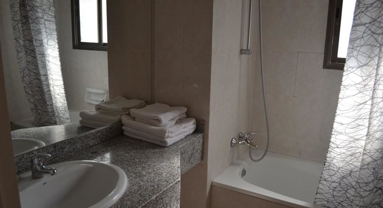 отсутствие горячей воды в душе и полная невозможность им пользоваться- это был шок! В раковине вода горячая была во второй половине дня, когда нагревался бак на крыше. Приходилось мыться, поливая на себя из ковшика( в раковине муж набирал воду в ковшик,лил на меня в душевом поддоне,потом я на него, вот так и мылись). О номерах всё подробно написано, номер с кухней, всё работало, за исключением эл.чайника,но я брала свой, а также брала фен, поскольку знала, что его в номере нет.Из посуды- кастрюля, сковорода, ковшик, тарелки чашки, ложки, вилки, тупой нож.Средство для мытья посуды есть,губки,кухонное полотенце, туалетной бумаги дали сразу 4 рулона.Единственный плюс- хоть и полудохлый, но бесплатный кондиционер( с нас, во всяком случае, плату не брали, хотя во многих отелях кондиционер за 6-8 евро). Мы жили в 62 номере, не знаю, может в других номерах с душем всё было нормально, мы ни с кем не общались, старались в отель приходить только переночевать. Этот отель только для этого и предназначен.