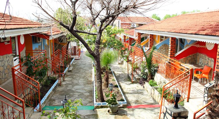 Отель находится на небольшой улочке недалеко от набережной с променадом и платными пляжами. До моря 5 минут пешком, но пляжи здесь либо отельные либо платные. На платном пляже, если найдете свободное от лежаков местечко (что довольно трудно), то можно не занимая лежака искупаться или расположиться на полотенце. У отеля есть договоренность с пляжем full moon там лежаки и зонт, сортир и душ бесплатно, все напитки и пр. естесственно за денежки. На пляж ходит автобус 9,20 и 10,20, а обратно в 16 и 17 часов. Обратно с пляжа идти пешком минут 20-25, т.е. 2,5 км примерно (см. гуглкарты), но дорога довольно приятная, т.к путь обратно идет по пляжу, старому городу вдоль амфитеатра и по набережной. Пожилым людям в жару ходить было тяжело. Мне с 9 летним ребенком было нормально пройтись, хотя жарко. Пляж находится с другой стороны мыса, нежели отель.