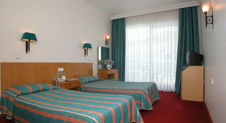 Сам отель 250 человек, 6 этажей, 1 лифт на всех, номера однокомнатные, все с видом на море, в номере минибар, телевизор (два русских канала – РТР и Первый), Сплит кондиционер, балкон. Две кровати – двуспальная и односпальная, в номере есть телефон и фен. В ванной жидкое мыло.