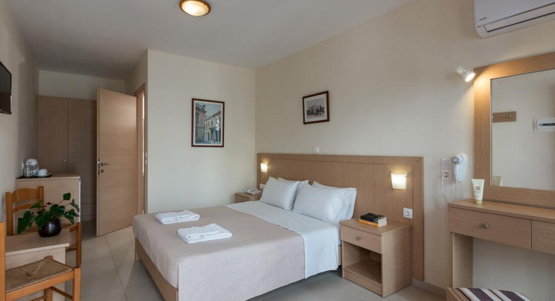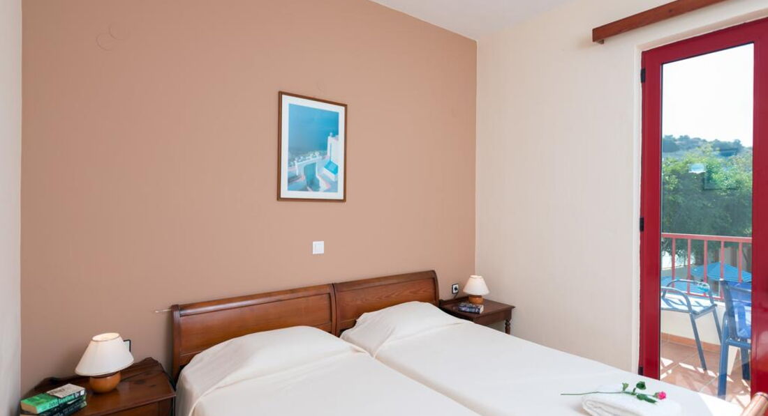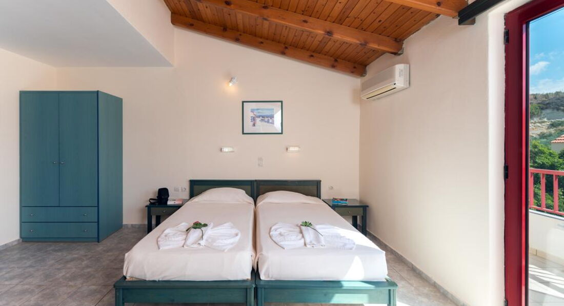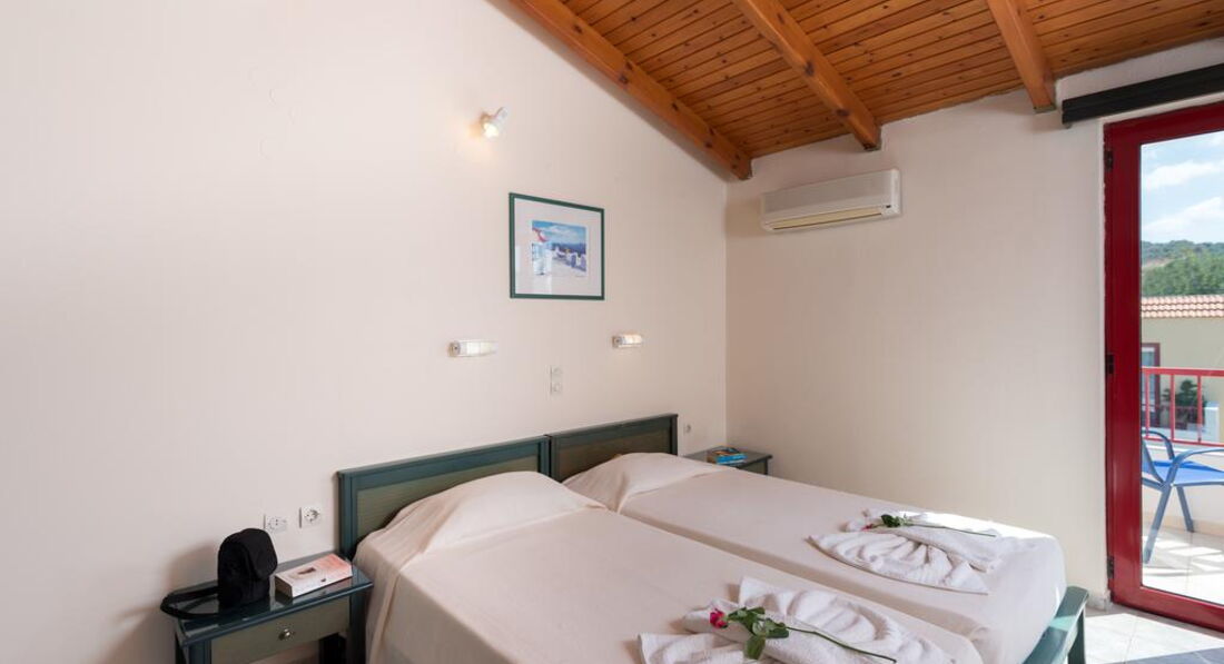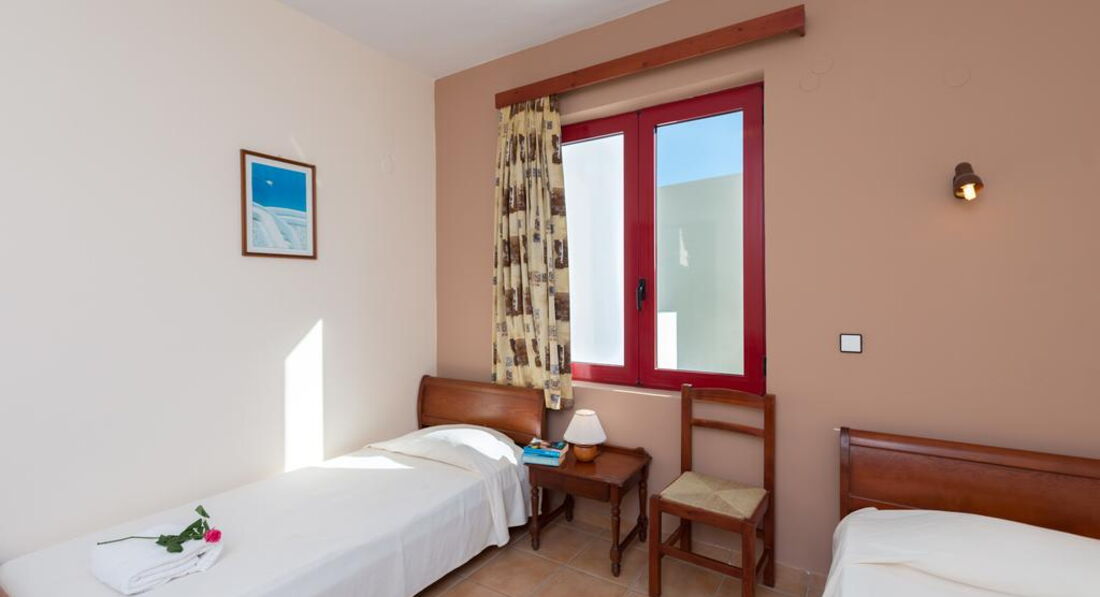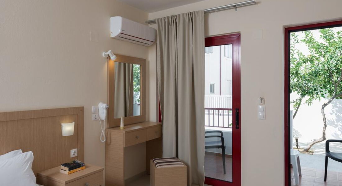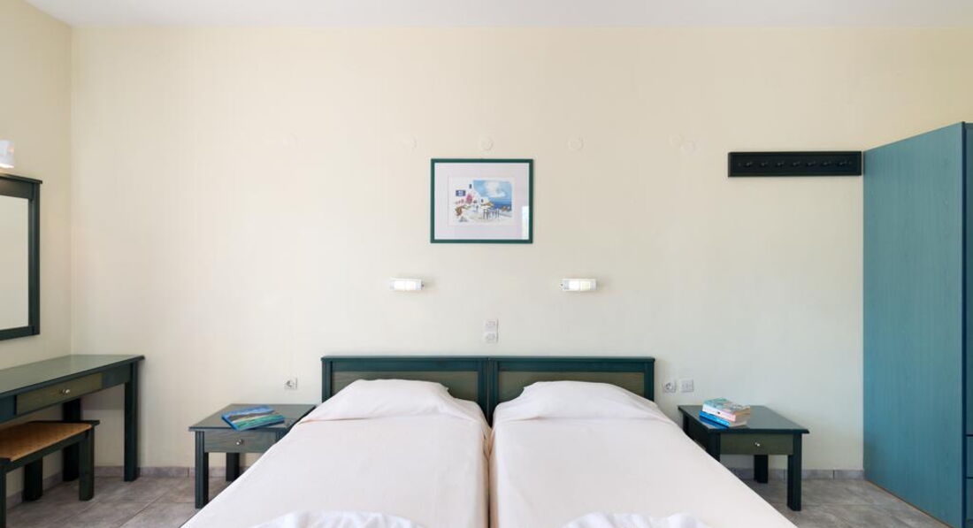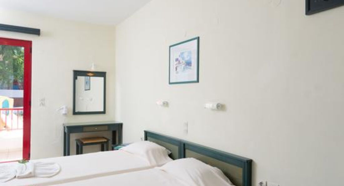 Типи номерів: • Double Standard for Single use (20 м2, вид на сад, басейн, море. Одна спальня, балкон/тераса) • Double Standard (25 м2, вид на сад, басейн, море. Одна спальня, балкон/тераса) • Triple Standard (27 м2, вид на сад, басейн, море. Одна спальня, балкон/тераса) • Family Open Plan Room (30 м2, вид на сад, басейн, море. Одна спальня, балкон/тераса) • Family One-Bdr 4 pax (35 м2, вид на сад, басейн, море, Дві спальні, розділені дверима, балкон/тераса) • Family One-Bdr 5 pax (37 м2, вид на сад, басейн, море. Дві спальні, розділені дверима, балкон/тераса)У номері: • душ або ванна • мило • фен • індивідуальний кондиціонер (6 євро на день) • супутникове ТБ (є 2 російські канали) • телефон • чайник • міні холодильник • праска та прасувальна дошка (за запитом) • сейф (2 євро на день)