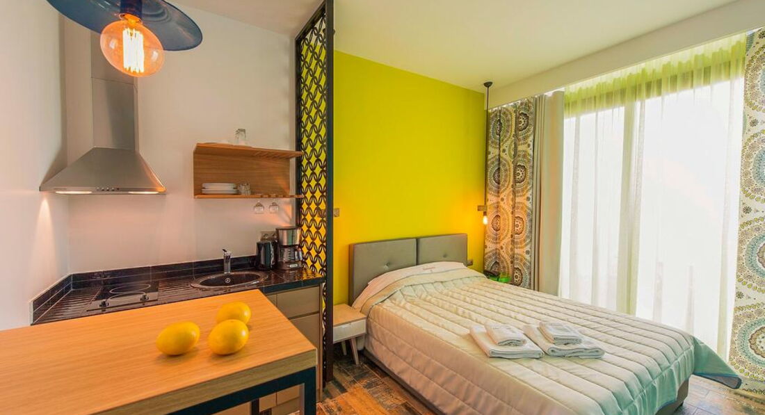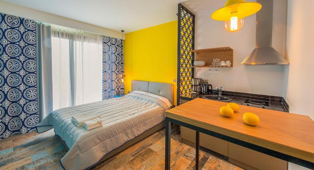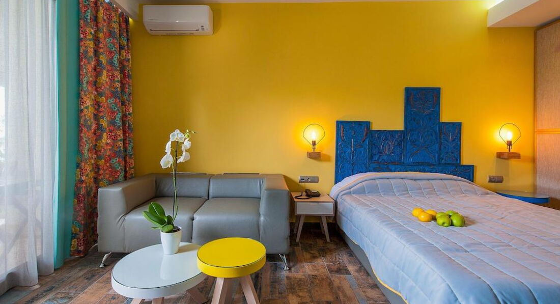 Поновлено 2014 р. Всього 16 номерів: Double Rooms & Triple Rooms (~20 кв.м), Suites (~35 кв.м). Типи номерів: Double Room Двоспальне ліжко. Triple Room Двоспальне ліжко та крісло-ліжко. Suite 2 типи номерів. Одна кімната з двоспальним ліжком та диван-ліжком Або салон з диваном та спальня з двоспальним ліжком. Ванна із гідромасажем. DVD-плеєр, халати та тапки, посудомийна машина. Після прибуття – пляшка вина у номері. Для гостей, які проживають у сюїтах, надається напій у барі.У номері: Балкон/тераса Ванна/душ Кондиціонер Кухня: кухонний куточок (електрична плита з 2-ма конфорками, електрочайник, посуд) Російський канал Супутникове ТВ ТБ Телефон Фен Чайник