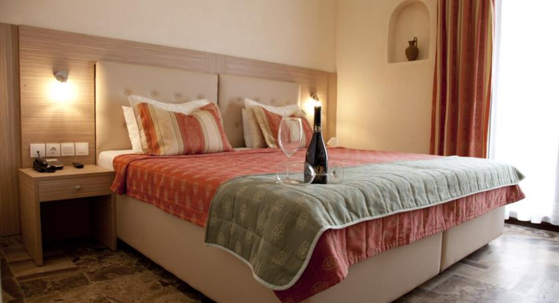 Невеликий готель розташований на центральній вулиці Херсонісоса, в пішій доступності від магазинів, барів, таверн. Приємний номерний фонд. До ближнього піщаного пляжу приблизно дві хвилини. Готель є членом гольф-клубу. З огляду на своє розташування, підійде любителям вечірніх прогулянок. Рекомендуємо для активного парного та сімейного відпочинку, у тому числі з дітьми.