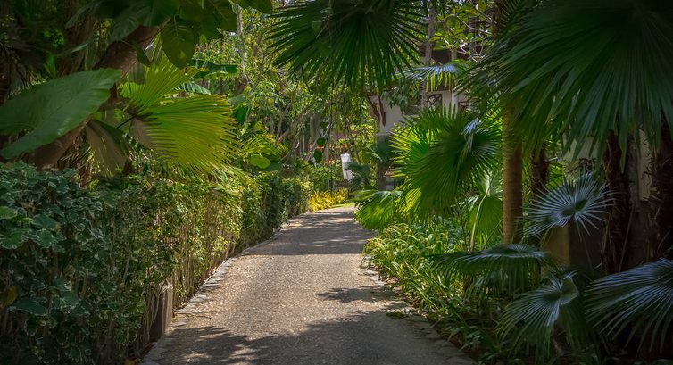Бронировали номер категории "Пляжный коттедж" с завтраком. Это самый дешевый вариант размещения. Номера-домики расположены на 2, 3 и 4 линии от пляжа. Вид на пляж отсутствует. Вид из этих домиков «в сад» т.е. на дорожки и стены впереди стоящих домиков, но все равно живописный.