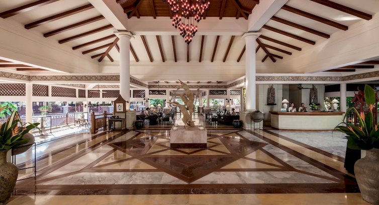 На отдыхе была в первой половине апреля. Разместили быстро, предложили прохладный напиток, чемодан довезли на электрокаре до бунгало.