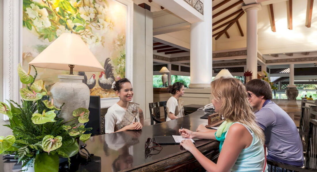 По приезду встретили прохладительным напитком, что было очень кстати. Оформление заняло 20 минут, проводили до номера, по дороге объяснили, что- где находиться, предоставили схему территории отеля. С заботой посоветовали долго не спать, т.к после бессонного,ночного перелета хотелось просто спать и никогда не просыпаться. Халаты, тапочки, предметы личной гигиены, полотенца уже ждали своих постояльцев. Белоснежные кровати удивляли своими размерами. Вид с террасы: шикарный бассейн с водопадами и цветущее дерево. Просто рай. А какие звуки: пение птиц, крики неведомых животных. Буйство природы. По территории гуляют кролики или зайчики, курочки с цыплятами и петушками, ящерки. Территория отеля довольно большая, ухоженная, множество скульптур, цветов. Очень внимательный персонал. Всегда встречают с улыбкой, спрашивают все ли в порядке. Уборка номеров ежедневная, очень качественная. Однажды вся семья находилась на террасе и пришли убирать номер, сперва спросили: Можно ли начать уборку? Получив положительный ответ убирали номер минут 45. Особо хочется отметить работу русскоговорящих администраторов Юлия и Ольга. Персонал прекрасно понимает английский язык, но Юлия и Ольга помогали понять Тайский менталитет, также немного рассказали о местных нравах и обычаях , что облегчало взаимопонимание не только на территории отеля , но и за его пределами. Менеджмент Отеля принял верное управленческий решение, приняв данных сотрудников в свою команду. Надо отдать должное организации работы персонала - чувствуется отлаженная система, как единый организм. Даже при посещении СПА центра, администраторы заботливо объясняли массажистам о проблемных зонах постояльца. Все 14 дней мы были окружены заботой, вниманием. Так приятно после темпа Москвы, окунуться в атмосферу доброжелательности. Зарядились на все 100% положительной энергией. Расположение отеля очень удачное: от аэропорта мин. 35, свой пляж, территория отеля большая, никто никому не мешает, нет городского шума и дебоширов. Ну, а если хочется привычной суеты, то пож-ста, 3 раза в день ШатлБас отвезет вас в Патонг (15-20 мин). После бурной тусовки и шопинга возвращаешься в отель как домой, в свой тихий , уютный мирок. Питание в отеле на любой вкус (от 220 до 560 батт) за блюдо. Перепробовали блюда Тайской кухни, и даже борщ и пельмени )))). Во время отливов пользовались Отельным катером, с которого можно нырять, на нем есть лежаки, душ, зонтики. Можно заказать пиво, пиццу. Множество разнообразных рыб.
