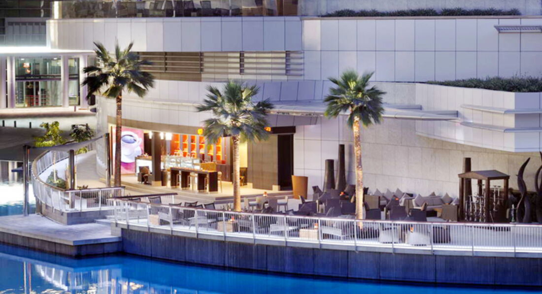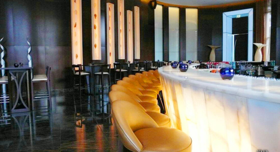 На 63-м этаже отеля культовый бар NEOS sky lounge(Нил). Самый высокий бар в мире. Dress code. Подъем за 40сек. Два лифта, с пересадкой. Отсюда изумительный обзор на Burj Dubai, фонтаны, которые взлетают вверх каждые полчаса с 19-00 до 24-00.