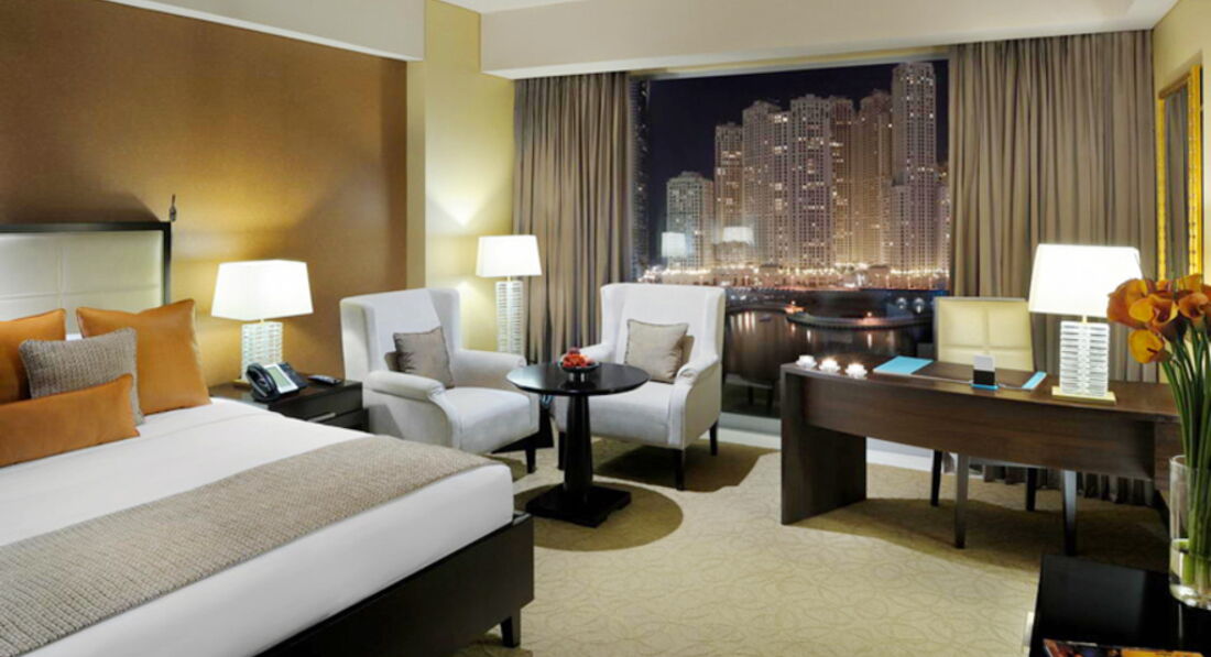Были с женой в этом отеле в мае 2014 года. Приехали мы в 22:00. По приезду нас пригласили за отдельный VIP стол для регистрации. Весь персонал очень вежливый и услужливый. Во всем что было необходимо помогали с удовольствием. Есть русско говорящий персонал. Номер - как с картинки. Точь-в-точь. Для того что бы подняться в номер нужно иметь карту для лифта. Без нее лифт просто не поедет. Это очень удобно и безопасно. Так как никто посторонний не сможет проникнуть на ваш этаж. Вид из номера - на ура! Во всем здании отеля невероятные восточный аромат. Почти во всех номерах есть балконы. Это очень большой плюс. Так как в большинстве отелей их нет. И как правило окна не открываются. В номерах убирали 2-а раза в день. Всегда на 5. Жена давольно привередлива в этом вопросе. У нее все всегда должно блестеть. Здесь все было именно на 5+. Первая уборка где-то с 12:00 до 14:00. Вторая - это так называемая подготовка ко сну. Прибирают, готовят постель ко сну, закрывают шторы, приглушают свет, на каждую подушку кладут шоколад. На каждый столик булка воды и стакан. Мебель в номере современная. Имеется капсульная кофемашинка. Чайный набор. Аудиосистема. Удобная разводка по эл-ву. 2-а халата, тапочки, много полотенец. Постельное белье и полотенца меняли каждый день. Оставленные чаевые со стола никогда не брали. Только лишь при личной встрече они соглашались брать чаевые. Интернет во всем отеле (в номере, у бассейна, в ресторане) ХОРОШИЙ и самое главное - БЕСПЛАТНЫЙ. Один словом - СЕРВИС на ВЫСОТЕ!!! Так же отель имеет один давольно большой бассейн с панорамным видом на лагуну Marina. В хорошую погоду видно море. Есть бассейн и для малышей. За ним всегда следят смотрители. Сам отель находится в прекрасном районе Дубая. Район Dubai Marina очень красивый. Около отеля есть прокат велосипедов. Рекомендую взять велик вечером на часик и прокатиться по Dubai Marina и насладится всей красотой этого района. К тому же дорога оборудована специальной зоной для велосипеда. Вечером очень много кто занимается бегом, катается на велосипедах и тд. Отель находится между 2-мя станциями метро. Идти минут 5-ть пешком. От отеля близко к морю - пешком минут 10 по живописному мосту через лагуну Marina. Пока идешь до моря наслаждаешься красотой этого района. Вблизи отеля есть большой супермаркет, где все необходимое можно приобрести. Прямо из самого отеля есть вход в большой торговый центр. Там есть не только магазины и кафе, но и еще один супермаркет и ресторанный дворик. На 0 этаже всегда есть такси. До центра Дубая есть на такси минут 15. На метро дольше - минут 30-40. На метро стоит прокатиться хоть 1 раз. В целом я с чистой душой могу порекомендовать этот отель для приятного комфортного и спокойного отдыха. В нем есть все и даже больше.
