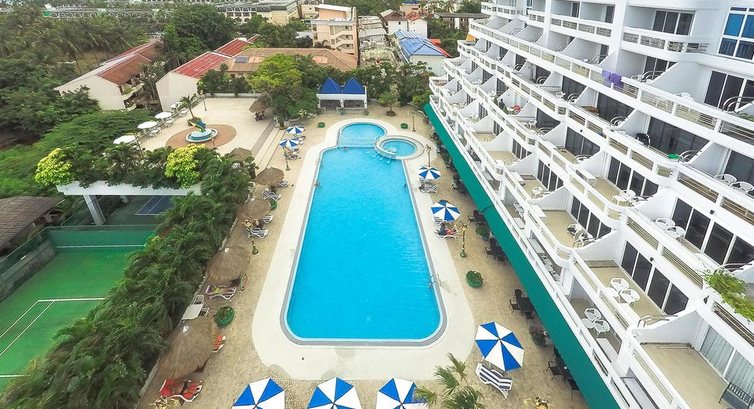 Красивое, высотное здание, с большим бассейном, с маленьким ресепшеном. В отеле есть корт для игры в тенис, есть сауна 100 бат/час, есть библиотека, интернет уголок, хотя вай-фай работал нормально, на лобби есть весы для багажа. Рядом много кафешек, магазинов. Персонал услужлив, улыбчив. Завтраки скромные, но не умрёте с голоду. Уборка номеров безобразная, убирают плохо, всегда что-то не докладывают. Есть ещё одна фишка. Тапочки в номере не одноразовые, а резиновые сланцы. Мы в первые видим такое, чтобы до меня или после кто-то ещё носил эти же тапки. Жесть! Ещё минус, это слабый напор горячей воды, помыться проблематично.