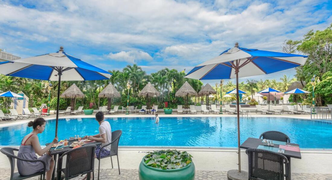 В номере были фрукты (бананы, мандарины, яблоко). С балкона 6 этажа море не особо видно, его закрывают деревья на пляже. На балконе 2 пластиковых стула и пластиковый стол, стоит и шумит компрессор индивидуального кондиционера. В номере всё как на фото сайта отеля: большая двуспальная кровать, две тумбочки, диван, кресло, стул, ЖК телевизор с одним русским каналом (НТВ мир), сейф, минибар, чайник с чайными принадлежностями. Ежедневно в номер ставили 2 бутылки воды по 0,6 и пакетики с кофе, чаем и сахаром. Вся обстановка в хорошем состоянии, кроме халатов (один был буквально застиран до дыр, торчали нитки, второй с бурыми пятнами). По-русски в отеле никто из персонала не говорит и не понимает. Соотечественников и друзей из КНР в отеле тоже очень мало.