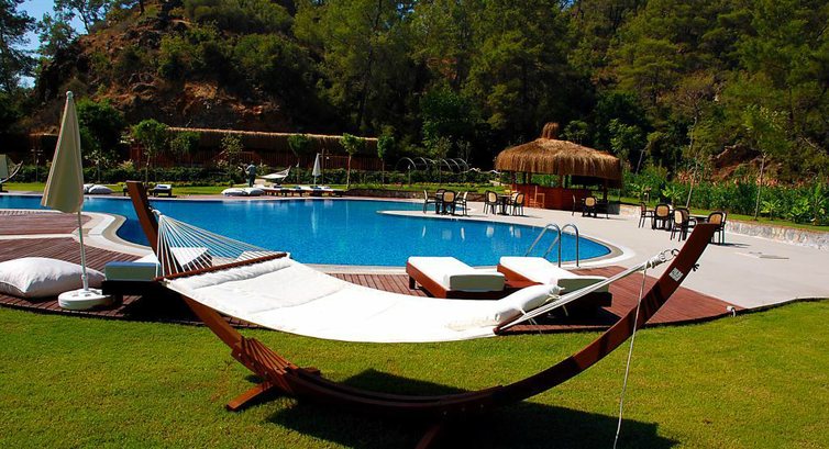 Отдыхали большой компанией в этом отеле с 9 по 16 мая 2010 г. Первое, что поразило, так это отсутствие толпы отдыхающих! Этот отель подходит тем, кто ценит покой и уют, тем более, что он расположен в заповедном месте, утопающем в зелени. Мне лично не нужна ни анимация, ни дискотеки (хотя немного потанцевать можно :), поэтому я была очень довольна их отсутствием (в отзывах отдыхающих после меня дискотека "присутствует", я не застала...). Вставала рано (в 7 часов по местному) - на пляже - никого! И я блаженствовала в море! Днем, когда становилось жарко, уходила в тень, например, почитать книгу, благо имелись на территории и гамаки, и мягкие лежаки под создающими тень деревьями... Таким образом, полный был релакс обеспечен! На территории - 2 горные речки и озеро!!! (что создает дополнительную прохладу)...