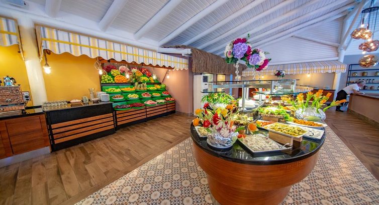 Шведский стол очень скудный,я думаю даже в 2ух звездах лучше кормят,выбора никакого.Этот отель не "все включено",так что если хочешь попить чаю или водички попроси,тебе,конечно принесут,но цену скажут только на ресепшен и то через несколько дней и стоимость Вас неприятно удивит.