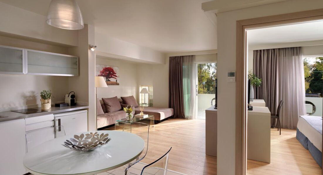 • Corner suite (спальня, вітальня з кухонним куточком, осн. ліжко - двоспальне, дод. - Софа, макс. 3 чол., 57 м2)