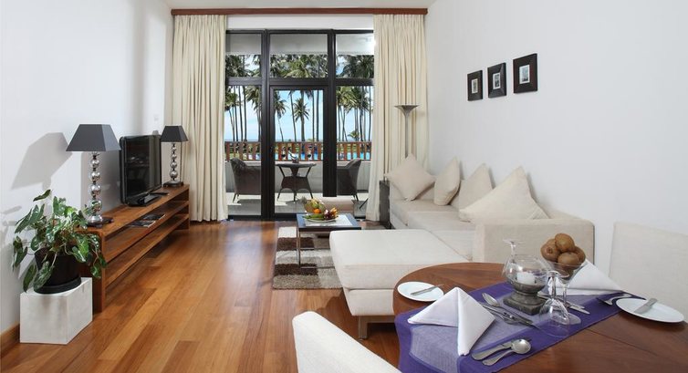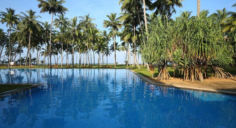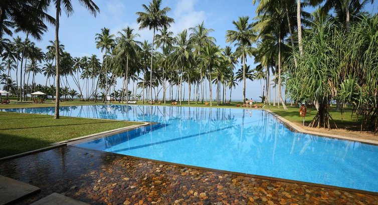 Нахожусь сейчас с мужем в этом отеле. Надеюсь мой отзыв поможет кому-нибудь выбрать оптимальный для своего путешествия вариант. На Шри-Ланке мы с мужем не первый раз, поэтому, есть, с чем сравнить. Начну с плюсов: хорошая зеленая территория с множеством свободных лежаков, бесплатный wi-fi на всей территории отеля, дружественный персонал, пустынный пляж с широкой пляжной полосой, хороший заход в океан. Минусы: старенькие номера, интерьер отеля ничем не примечателен, завтраки на 3: одни и те же блюда, даже нет разнообразия в их национальном уголке, нет станции с вафлями, всего один фреш и невкусная выпечка (что странно для отеля 5). Однозначно он не стоит тех денег, что мы за него заплатили. За территорией отеля ничего нет-ни кафе, ни магазинов, ни фруктов. Единственное нормальное место, где можно поесть морепродуктов: Jani Rest в 900 метрах по пляжу налево (вкусно и недорого), но опять же очень однообразно. Очень много ворон, но к ним со временем привыкаешь. Для тех, кто не был на Цейлоне советую Royal Palms 5 в Калутаре-были там в прошлом году, отель намного богаче и стилизованнее. Вообщем можно сюда приехать только лишь по очень хорошему спец. предложению, этак тысяч за 70 на двоих, дней на 10.....