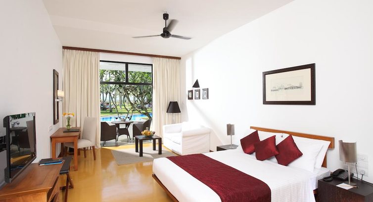 большая ухоженная очень зеленая территория. Пляж общественный, утром можно наблюдать как рыбаки сетями ловят рыбу. Еда вкусная. Близкое расположение к городу. До Коломбо 30 км. Русских мало. Персонал очень вежливый. Рядом с отелем тук-туки. Мы пользовались одним тук-туком. Нам очень понравилось.