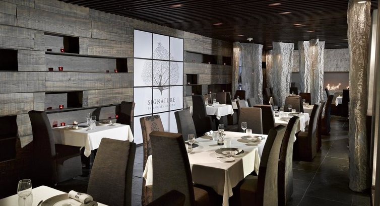 Повар главного ресторана имет три звезды Мишлен, в спорт-баре сервируют алкоголь.
