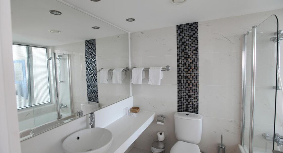 • ванна кімната (туалет, душ, ванна, фен)