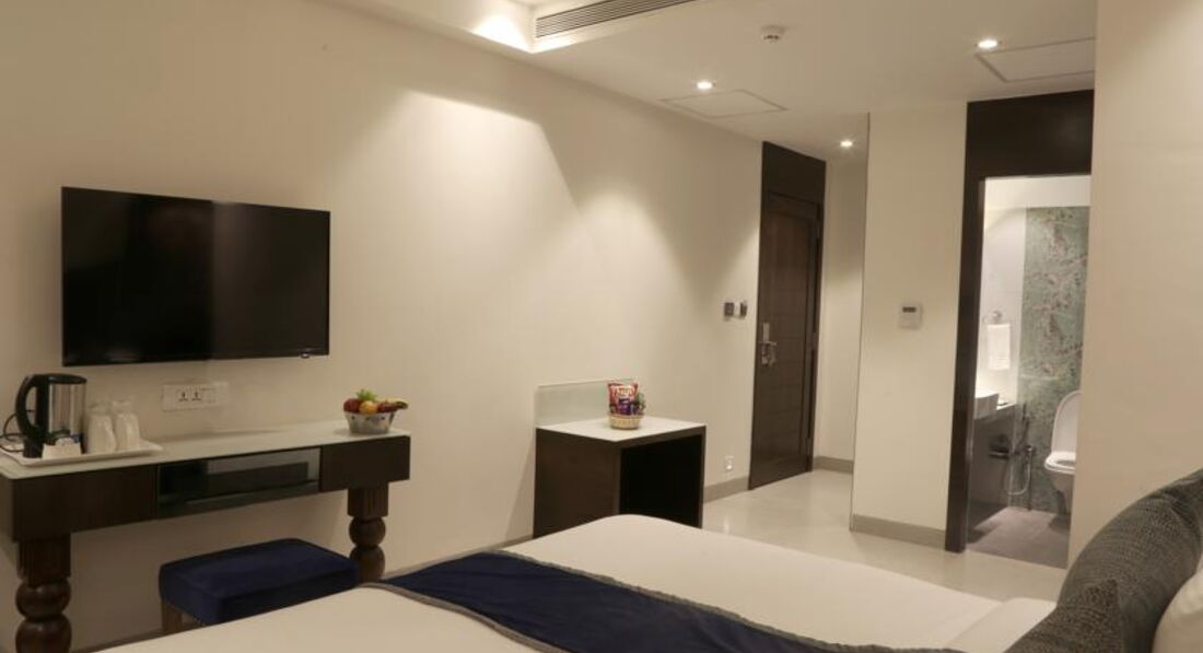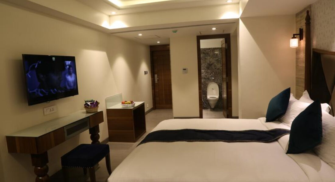 В номере все новое, чистое, ванная комната замечательная! (выделяю, т.к. думаю, по ванной можно судить в целом о чистоте номера и отеля в Индии, но это мои предрассудки))). Есть горячая вода. Вообще всё сделано со вкусом. В номере есть сейф(бесплатный), кондиционер, вентилятор, телевизор(естественно только с индийскими каналами) и ХОЛОДИЛЬНИК. Очень немаловажное, для меня по крайней мере, это наличие бесплатного wi-fi. Т.к. наш номер был рядом с ресепшеном, мы пользовались не выходя из номера.