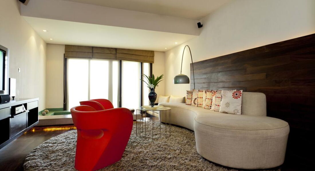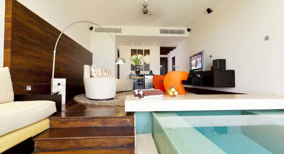 2 Loft Room with Plunge Pool (140 м2, макс. 3 або 2+2 особи). Двоповерхові номери: на 1 поверсі – вітальня, невеликий басейн, тераса, санвузол; на 2 поверсі – спальня, ванна кімната відкритого типу, балкон, вид на сад та океан.
