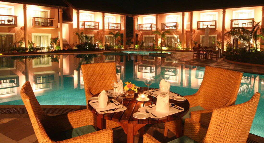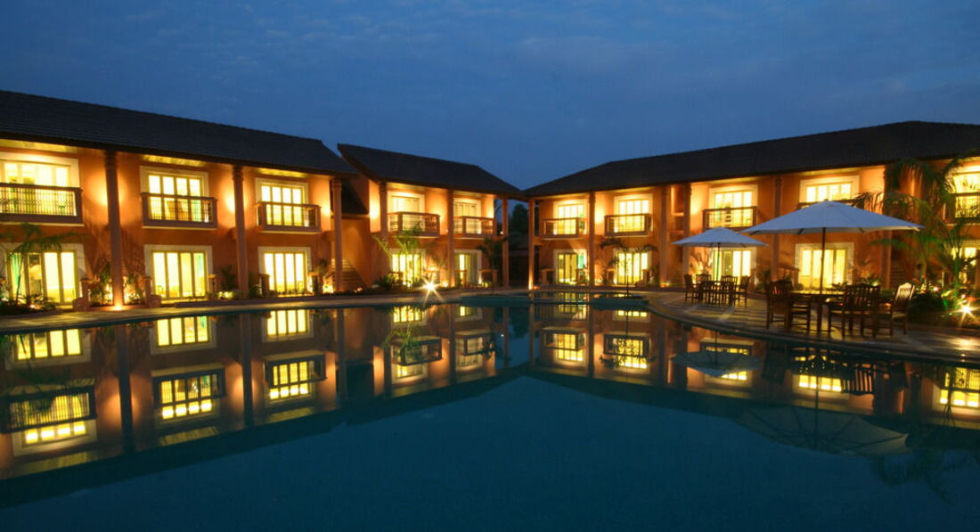 Летели через туроператора Корел тревел. Вылет был из Казани, самолет вылетел по расписанию без задержек. Впечатления о Гоа стали складываться по прилету в аэропорт: вид пошарпанный, идешь к автобусу, и сразу смущает запах коровьих фекалий, ну и автобусы оставляют желать лучшего. Сразу в аэропорту предлагают поменять доллары на рупии, курс не выгодный, 53 рупия за доллар. На улице встречает носильщик чемоданов, который, естественно, просит чаевые, после того, как донесет чемодан до автобуса. Предпочитает рубли. Народ там бедный, поэтому чаевые очень любит. Дороги в Гоа очень узкие, хорошо, что ехали ночью, движения не было. Наш отель был вторым по счету, близко от аэропорта - большой плюс. Первые и последующие впечатления об отеле очень положительные. Уютный компактный симпатичный. Кстати, отель для не курящих. Место для курения- столик в закутке отеля.