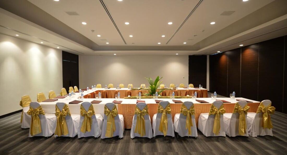 Територія та послуги: • басейн • 2 ресторани • бар • конференц-зали (до 250 осіб) • бізнес центр • Wi-Fi у лобі (безкоштовно) • шатл-бас у турзону (100 бат на особу в один кінець: 15:05, 18:05 /назад 18:30) Розваги та спорт: • тренажерний зал (безкоштовно) • спа-центр, сауна, парна • пляжний волейбол (безкоштовно) Для дітей: • басейн • міні-клуб • ігрова зона • дитяче ліжечко (за запитом, безкоштовно) • стільці в ресторані • няня (500 бат на годину на 1 дит) Живлення: BB, HB, FB, AI (сніданок-шведський стіл або по меню, залежно від кількості туристів, окремо для європейців та китайців; обід та вечеря - за меню) AI: Сніданок (6:30-10:30) – шведський стіл або меню – надається в залежності від кількості туристів. Обід (12:00-14:30) – їжа за меню; напої: вина, пиво місцевих марок, соки, прохолодні напої. Пообідній чай (16:00-17:00): чай, кава, печиво, легкі закуски, тайський десерт. Вечеря (19:00-22:00) – їжа за меню; напої: вина, пиво місцевих марок, соки, прохолодні напої. Бар (11:00-22:00) – напої: пиво місцевих марок, коктейлі з напоїв місцевих марок, віскі місцевих марок, соки, прохолодні напої. Пляж: Громадський піщаний пляж. Пляжні мати та пляжні рушники – безкоштовно (на ресепшен).
