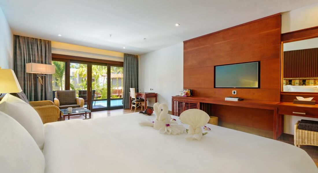 • 47 deluxe pool access (51 кв.м, 23 dbl/24 twin, макс. 3 чол, 1й пов, прямий доступ до басейну, джакузі в басейні, вид на басейн/сад)