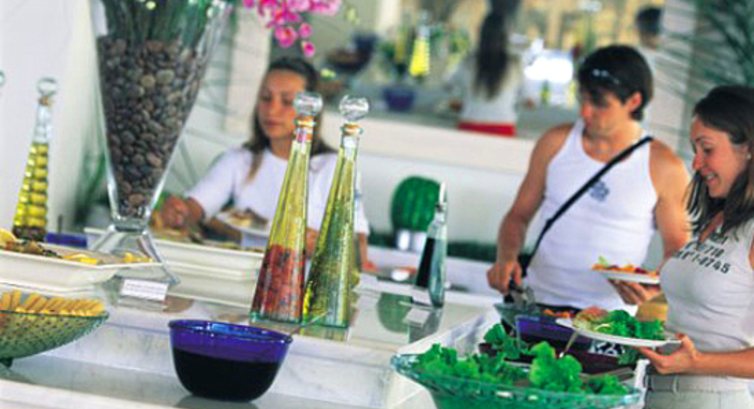 Включає: сніданок, пізній сніданок, обід, вечеря - шведський стіл; закуски протягом дня у барах готелю, алкогольні та безалкогольні напої місцевого виробництва. Свіжі соки, морозиво, імпортні алкогольні напої - платно.