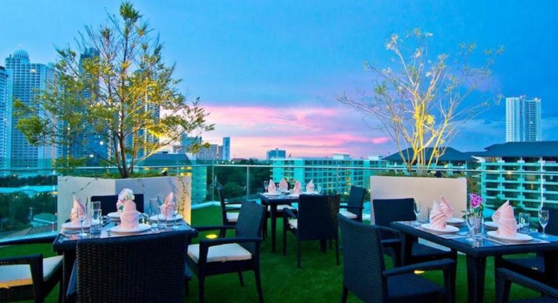 Очень понравился бассейн на крыше, там же есть небольшой бар и несколько столиков, где можно перекусить или освежиться напитком, любуясь на вечернюю Паттайю.