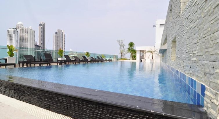 На 8 этаже Скай парк с бассейном,зоной релакса,баром и столиками для романтического ужина. Душ и туалет присутствуют.Вид панорамный на море,Паттайу открывается замечательный!!!