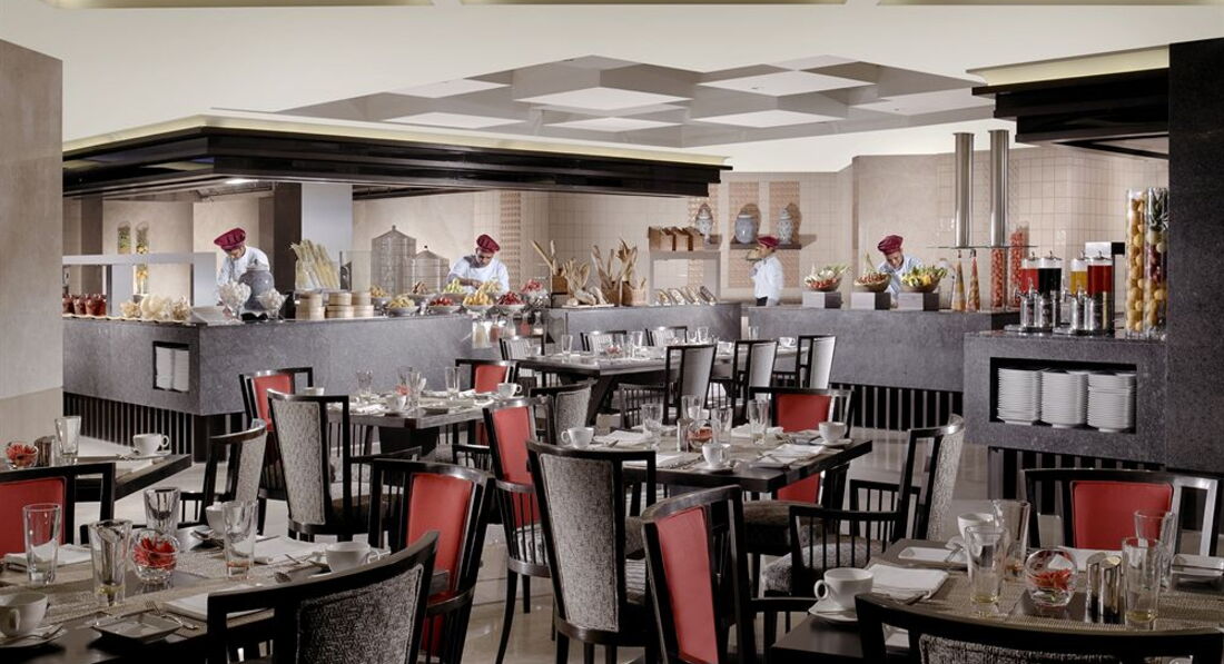 Мы брали только завтраки. Шведский стол был на любой вкус. Каши, супчики, йогурты в упаковке, овощи в разном виде, несколько видов мясных продуктов (ветчина, колбаса п/к, копченое мясо), сосиски, сыр, пекли блинчики. Мне понравился омлет с овощами и сыром. Все очень вкусно и разнообразно. Все не острое Много фруктов (ананасы, папайя, арбуз, дыня, гранаты, гуайява, апельсины, бананы, виноград). Отдельно можно попробовать и Индийскую кухню. Она находится в самом конце ресторана. Нам с мужем понравилось заказывать масала доса. Это тонкий блин с тушеными овощами и специями. Если попросить не класть перчик чили, то вполне не остро. Мне это блюдо подсказала Тальяна.