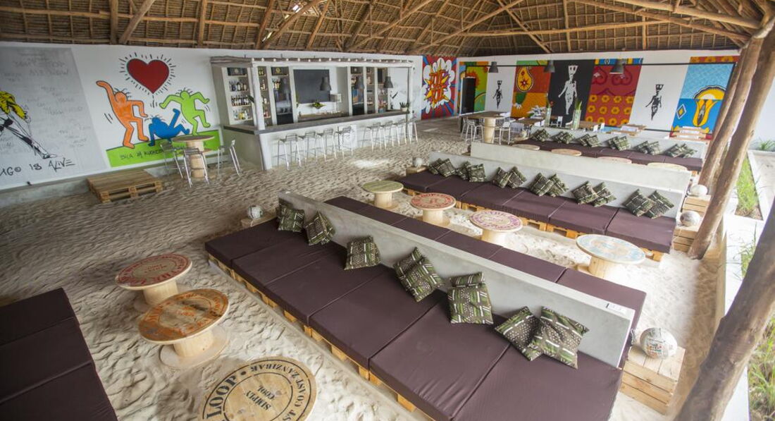 • бар та ресторан був спроектований як чудова галерея сучасного мистецтва з творами та картинами, натхненими великими виконавцями поп-арту, але виконаними молодими італійськими та африканськими художниками. Гості можуть подивитися футбол, регбі або Формулу 1 на супутниковому телебаченні та послухати музику, під місцеві та міжнародні коктейлі чи смачні свіжі тропічні фруктові соки.